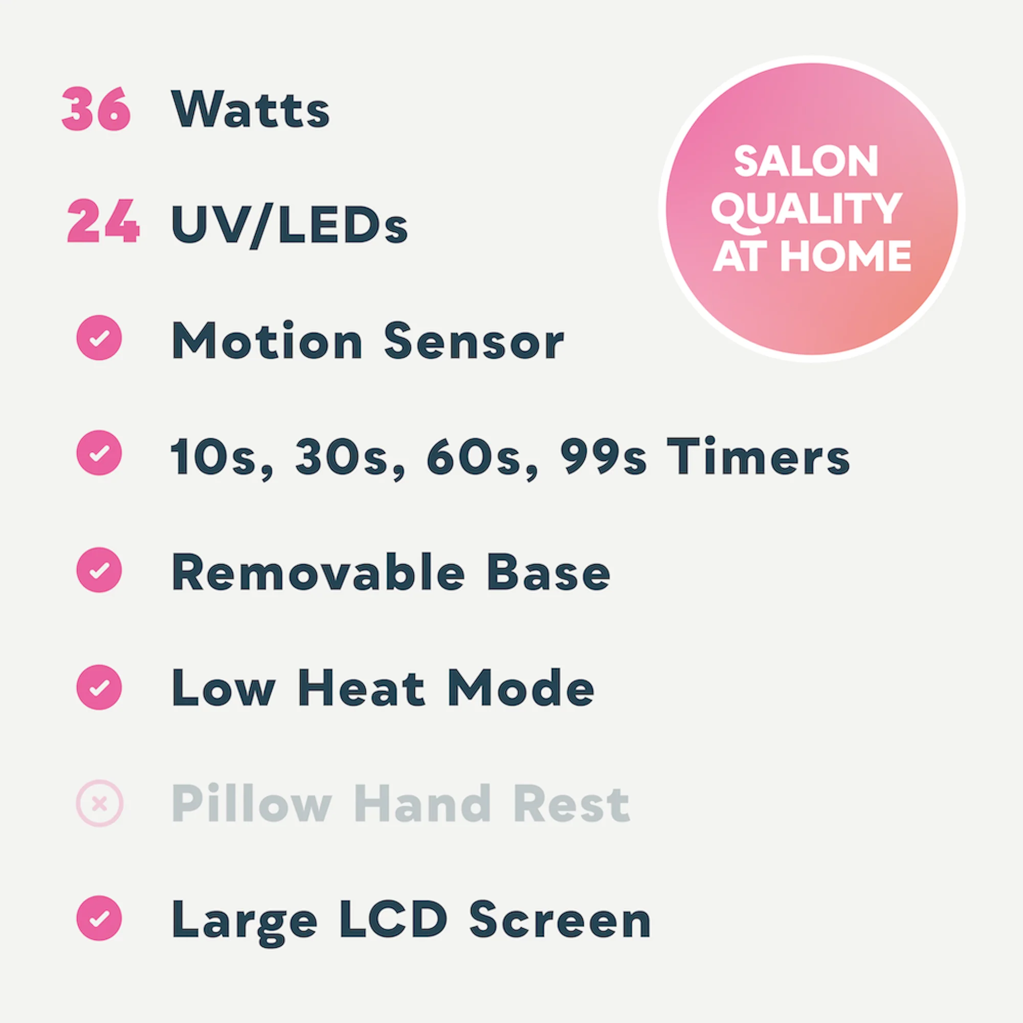Enjoy the flexibility of the Sun5's removable base panel, allowing for easy cleanup and hassle-free pedicures. Plus, with its LCD display and sleek design, this nail lamp is both functional and stylish.