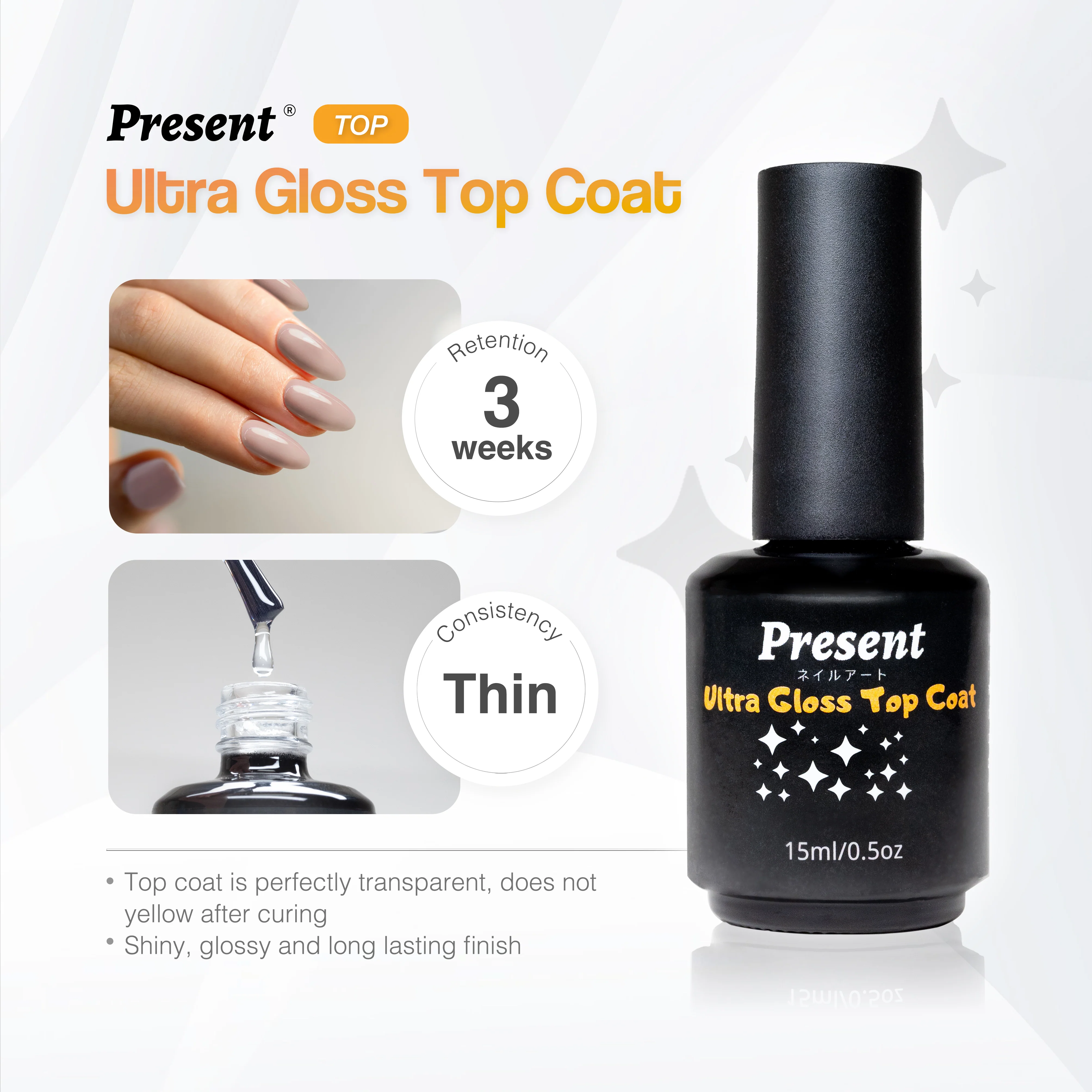 Base/Top Coat Gel Polish (No Wipe) - Present